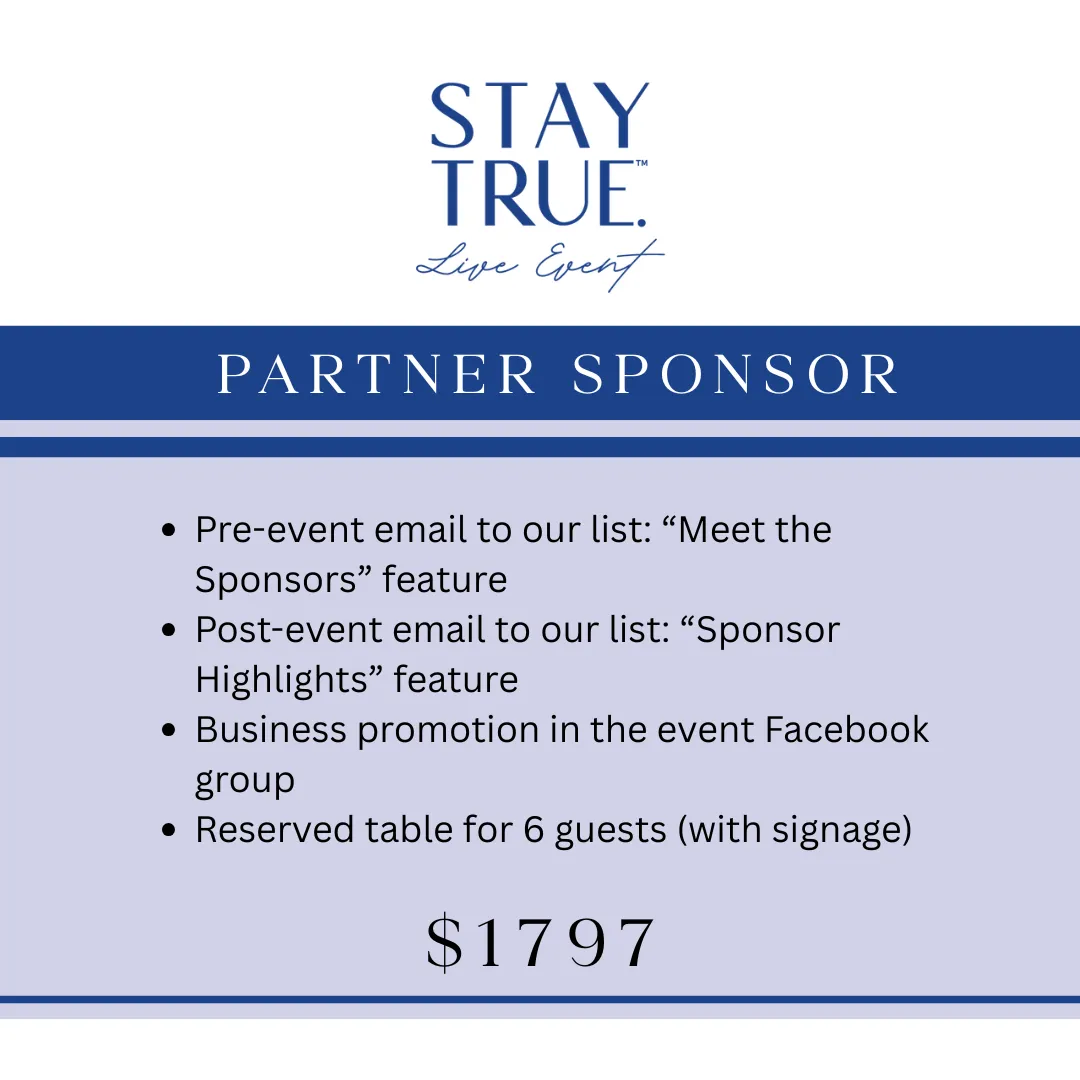 When you sponsor a table at Stay True, you bring eight women into the same experience. Your team, your colleagues, your circle. They do not just hear your vision. They catch it.